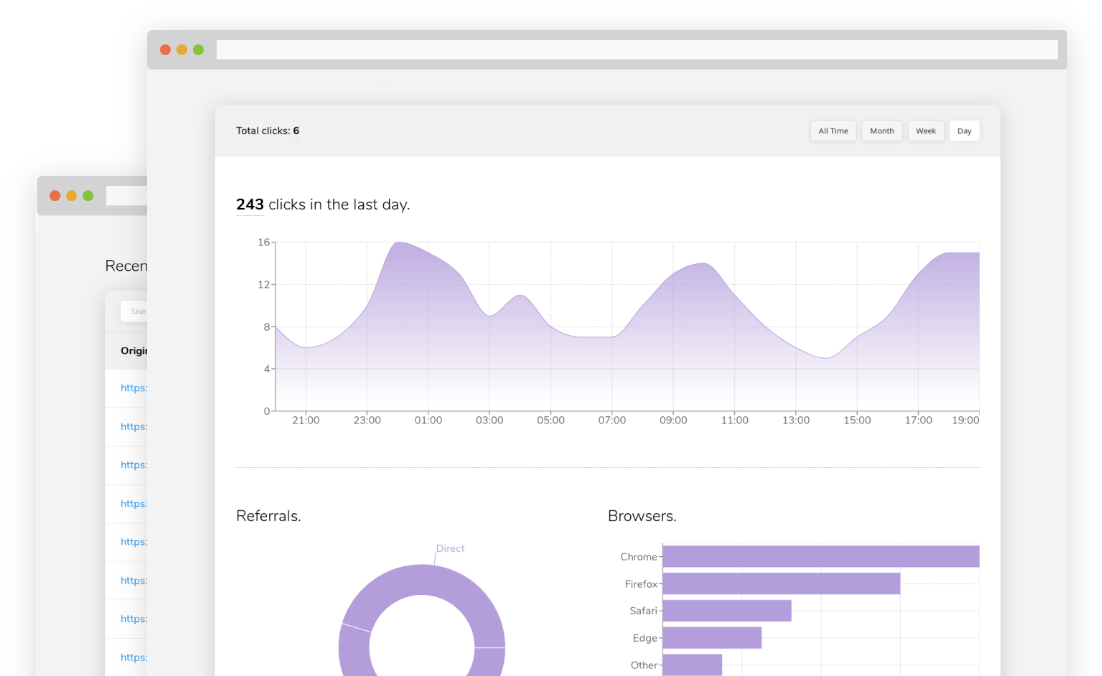 Create, protect and delete your links and monitor them with detailed statistics.